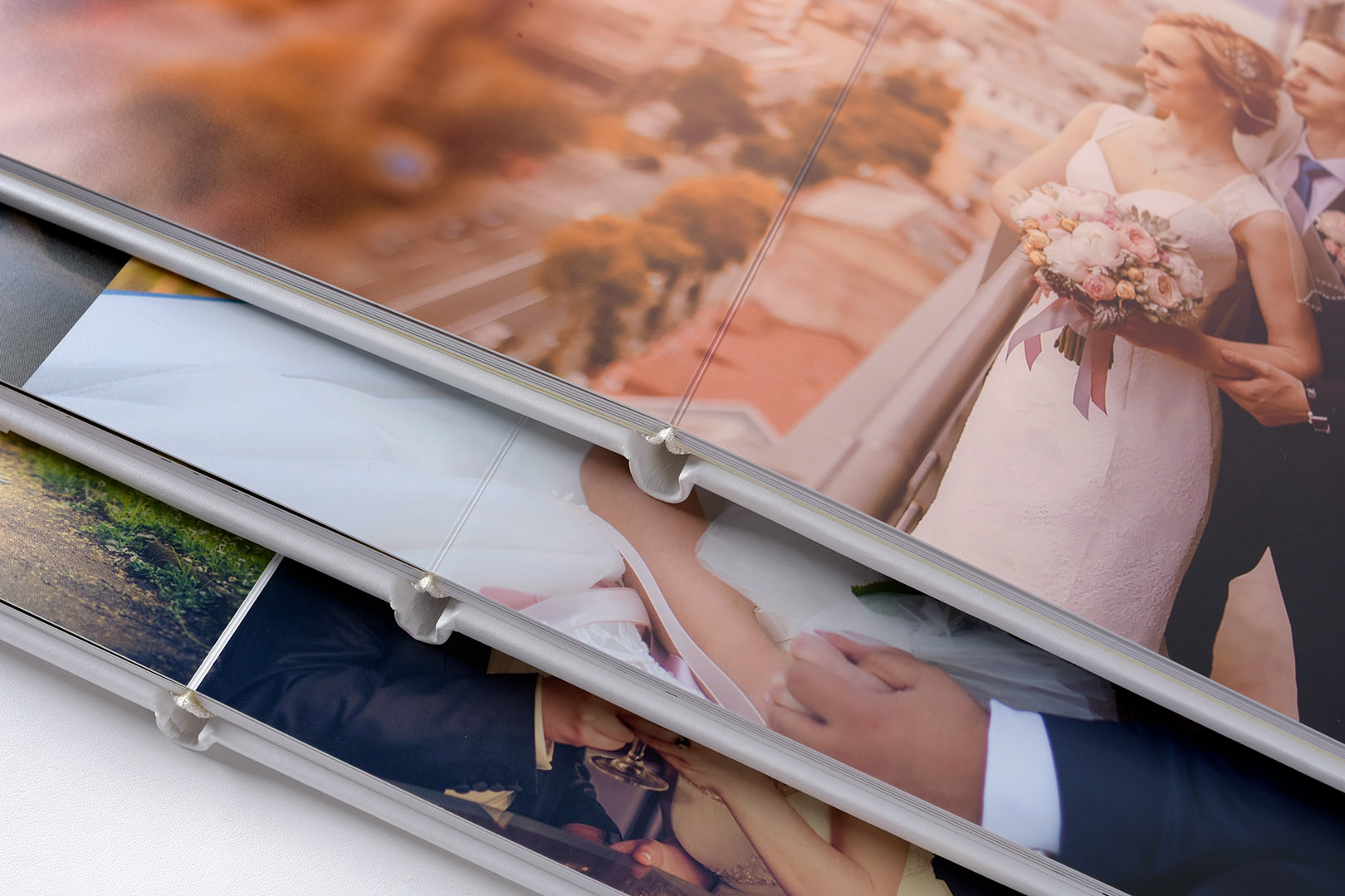 Najważniejszą cechą fotoalbumu jest to, że rozkłada się całkowicie na płasko i nie ma wcięcia w środku jak tradycyjna książka. Można umieścić zdjęcie na całej rozkładówce bez obaw gdzie przebiega zgięcie produktu. Wszystko będzie idealnie widoczne.